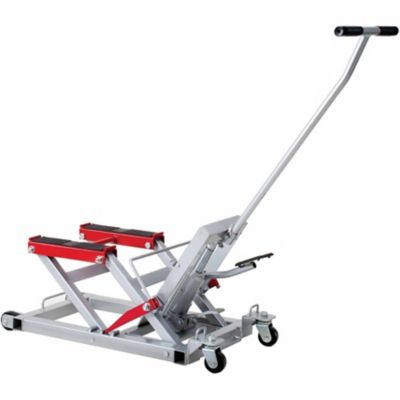 Sunroad 1100 lb motorcycle center scissor lift jack atvs dirt bike scooter crank hoist stand blue. Add to cart add to my list. Triple lift floor jack cars trucks motorcycles 620622e. Vivohome steel motorcycle atv scissor lift jack crank hoist stand with saddle and safety pins 1100 lbs.